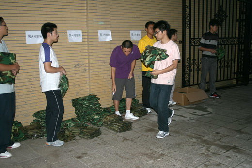 军训,是新生生活的重头戏,也是新生进行身份转换的一个重要过渡。9月9日早晨六点,公司10级新生在竹三领取军训服,与期待已久的军训来了个第一次亲密接触。