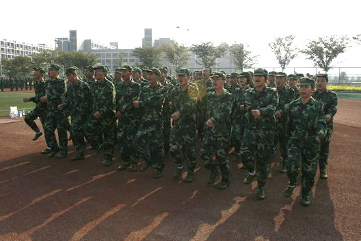在教官的带领下,公司150多位10级新生开始了为期近三周的军训生活。军训场上,在教官们响亮的口令声中,各排同学认真的进行着立正、跨立、停止间转法、碎步看齐、敬礼以及脱帽等基本军事动作的表演。虽然烈日当头,但新生们严格的按照教官的指令,认真学习各个动作。对于新生动作做不到位的地方,各位教官不厌其烦的亲手指导与示范。严格的军训确实很苦,但是绝大多数新生都以饱满的姿态面对军训。在军训场上,每一位新生都严格要求自己的动作做到标准,整个队伍的动作做到整齐。