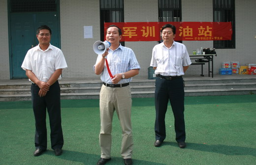 在钱书记作了简要的开场白后,章书记首先向大家送去祝福。他说,本次慰问是受了袁亮经理的委托,代表学院对新生们的关怀。而后,章书记就公司在科研教学及人才培养等方面所取得的成绩向新生作了简单的介绍,并对大家提出了殷切的希望。他说,安全学院在各个方面都一直很优秀,所以在军训方面也不能落后,希望10级的同学们严肃认真地参加军训,让军训成为大家老员工活的一个好的开始,为以后四年的学习生活打下坚实的基础。最后,院领导向教官及全体新生赠送了矿泉水、月饼、水果等礼品。
