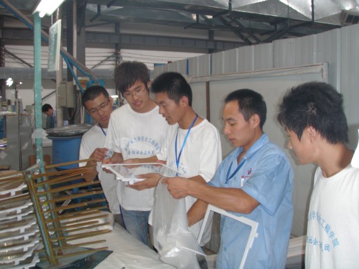 7月13日上午,在秀强公司人力资源部王刚主任的亲切接待后,团队一行人逐一参观了秀强公司的各生产车间。下午,团队5位成员便以小组形式分配到各个分厂,以“义务蓝领”的身份深入基层生产车间,在接受一线工人们的简单指导后,积极投身于生产工作。尽管队员们参与的是简单的生产环节,但在标准工时的工作中他们也深切的体会到生产中员工们的团结和务实。了解到企业的的效益离不开企业文化在公司员工中的渗透,更离不开蓝领阶层辛劳与汗水。其中一位有连续12小时夜班经历的同学深有体会的说:“正如秀强员工培训的宗旨一样,只有立足基层沉下去,才能体会到创业的艰辛,才能为未来的事业奠定基础。作为员工我们也应沉下去,才能在以后的职业生涯中坚实的走下去。”