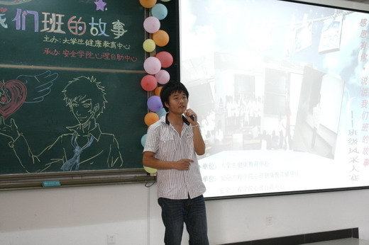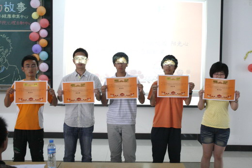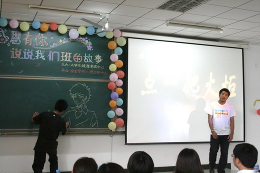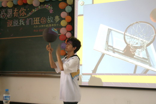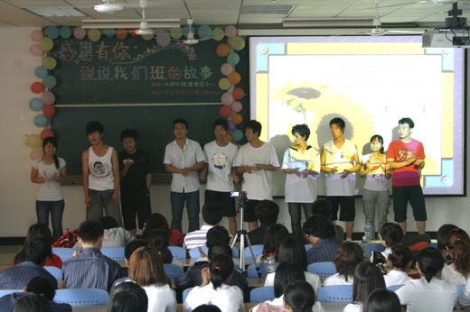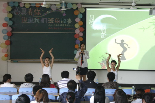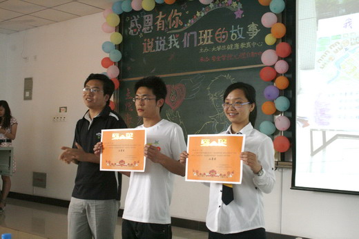 5月30日下午两点半,由校老员工健康教育中心主办,公司心理健康辅导站和心理自助中心承办的“透过感恩的窗,沐浴心灵阳光”系列活动之“感恩有你——说说我们班的故事”班级风采大赛决赛于教一A302成功举办。公司心理自助中心指导教师李秀老师、09级辅导员刘筱婕老师、资源学院辅导员王军鹏老师、计算机学院辅导员纪荣林老师及校老员工心理自助中心主任黄飞同学担任本次比赛的评委。比赛期间,校老员工健康教育中心指导教师李红娇老师亲临现场观看比赛,对进入决赛的五个班级的出色表演都给予了充分的肯定。