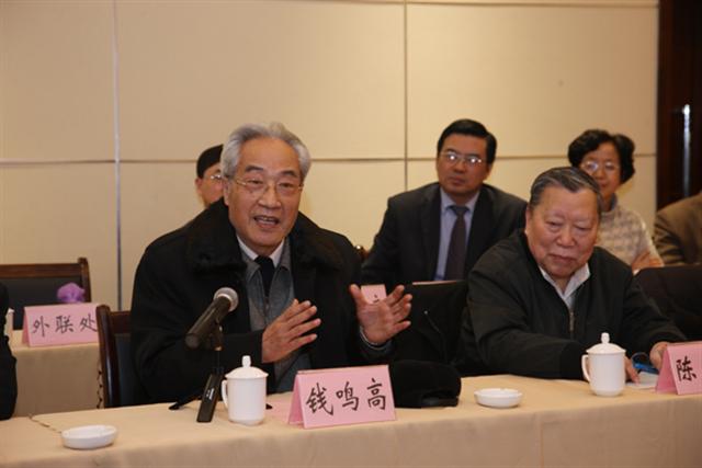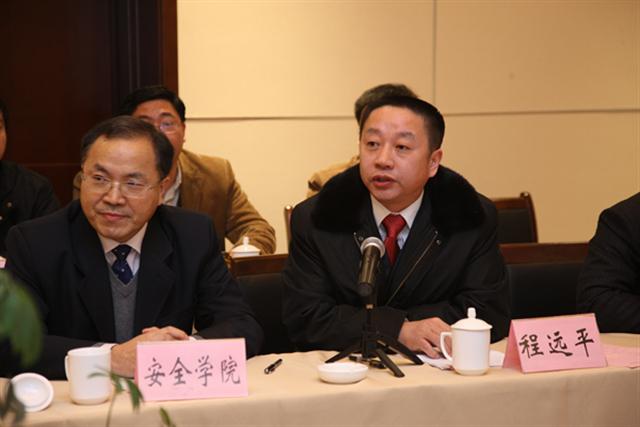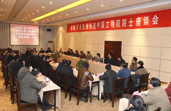 出席会议的三位院士也对袁亮教授当选中国工程院院士表示衷心的祝贺。钱鸣高院士说,我国煤炭目前每年30亿吨的产量就要有相应人才的支撑,长江后浪推前浪,年轻人必须尽快成长起来,弥补由于文革带来的人才缺失,承担起时代赋予的责任,而袁亮院士就是其中的代表。矿大的主要任务之一就是培养人才,而且必须培养出高端人才来,人无头不走,鸟无头不飞,一个学科一个团队,没有高素质的带头人很难发展起来。煤炭行业的科技还有有广阔的发展空间,希望学校的年轻人多向袁院士学习,深入钻研业务,凝练科研方向,进一步营造浓郁的学术氛围,更期望袁亮院士带领矿大做出新的更大业绩。陈清如院士说,这次新增院士,煤炭炭系统有三位同志当选,并且跨三个学部,很不容易,是个大丰收,因为我们煤炭系统原先有11个工程院院士,跨两个学部,9个在能源与矿业工程学部,2个在化工、冶金与材料工程学部。30亿吨煤开采出来,不仅仅是采矿科学的任务,还需要机械,电信等等各个学科的协作,希望今后煤炭系统当选的院士能跨更多的学部如机械与运载工程学部、信息与电子工程学部、环境与轻纺工程学部等。袁亮院士在淮南煤矿地质这么复杂的条件下,实现瓦斯与煤的共采非常不容易,当选院士当之无愧,他还很年轻,开拓能力,接受能力都很强,希望带领大家一起进行科学攻关。周世宁院士说,这次袁亮院士进入矿大接受聘任,意味愿意承担起新的责任,把淮南这样一个大的生产基地和矿大这一个大平台真正有着实质性的结合起来,这样的前景国内没有,从全世界来讲也很难找到这么好的一个机遇,大家要其齐心协力,尽快将安全学科发展壮大起来,在此基础上,辐射影响整个采矿、机电、机械等学科的快速发展,相信袁亮院士会给学校的发展带来新的动力。